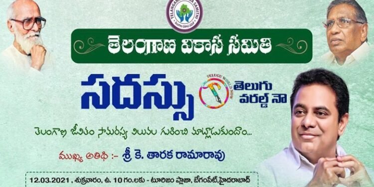 హైదరాబాద్ లోని హరిత ప్లాజాలో జరిగిన తెలంగాణ వికాస సమితి ఆత్మీయ సమ్మేళనంలో పాల్గొన్న టిఆర్ఎస్ పార్టీ వర్కింగ్ ప్రెసిడెంట్ కే తారకరామారావు.
