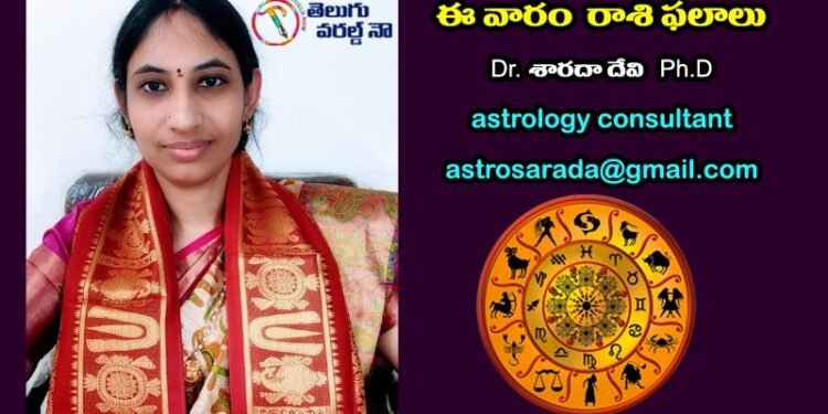 Weekly Horoscope From July 11th to July 17th by Dr. Sarada Devi. Ph.D, Astrology Consultant, Daily Horoscope, Zodiac Signs, Raashi Phalalu, Telugu World Now.